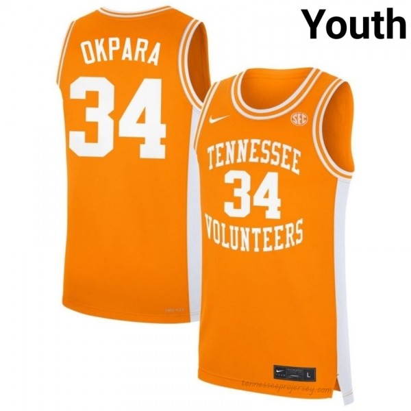 #34 Felix Okpara Volunteers Orange Youth Jersey | Official Replica Basketball University Enthusiasts 12043016